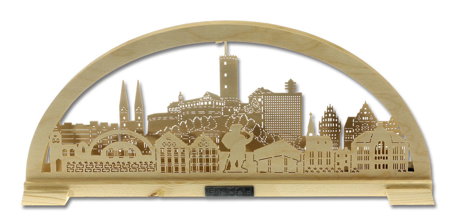 trägt das Bild der typischen Bielefelder Bauwerke. Ausgestattet ist dieser hochwertige Bogen mit einem LED-Lichtband.