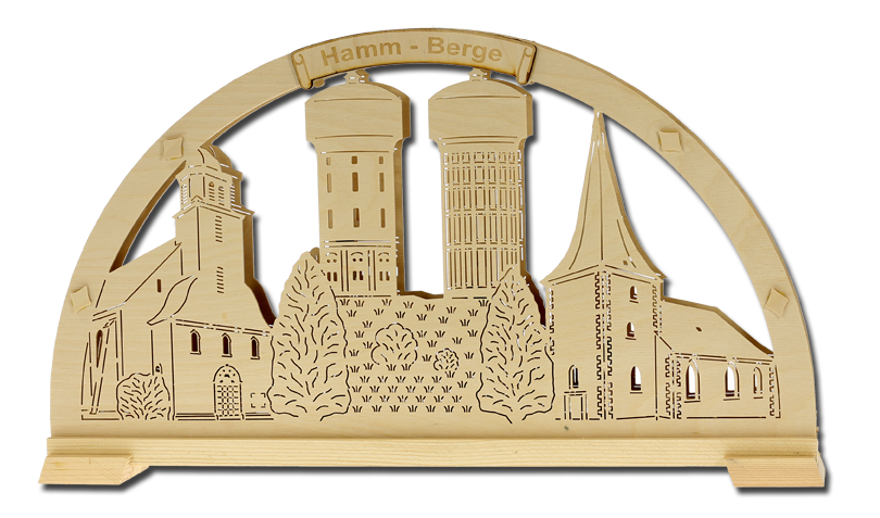 Der dargestellte Artikel ist gut 51cm breit und 30cm hoch und trägt Motive der Stadtansicht von Hamm-Berge.