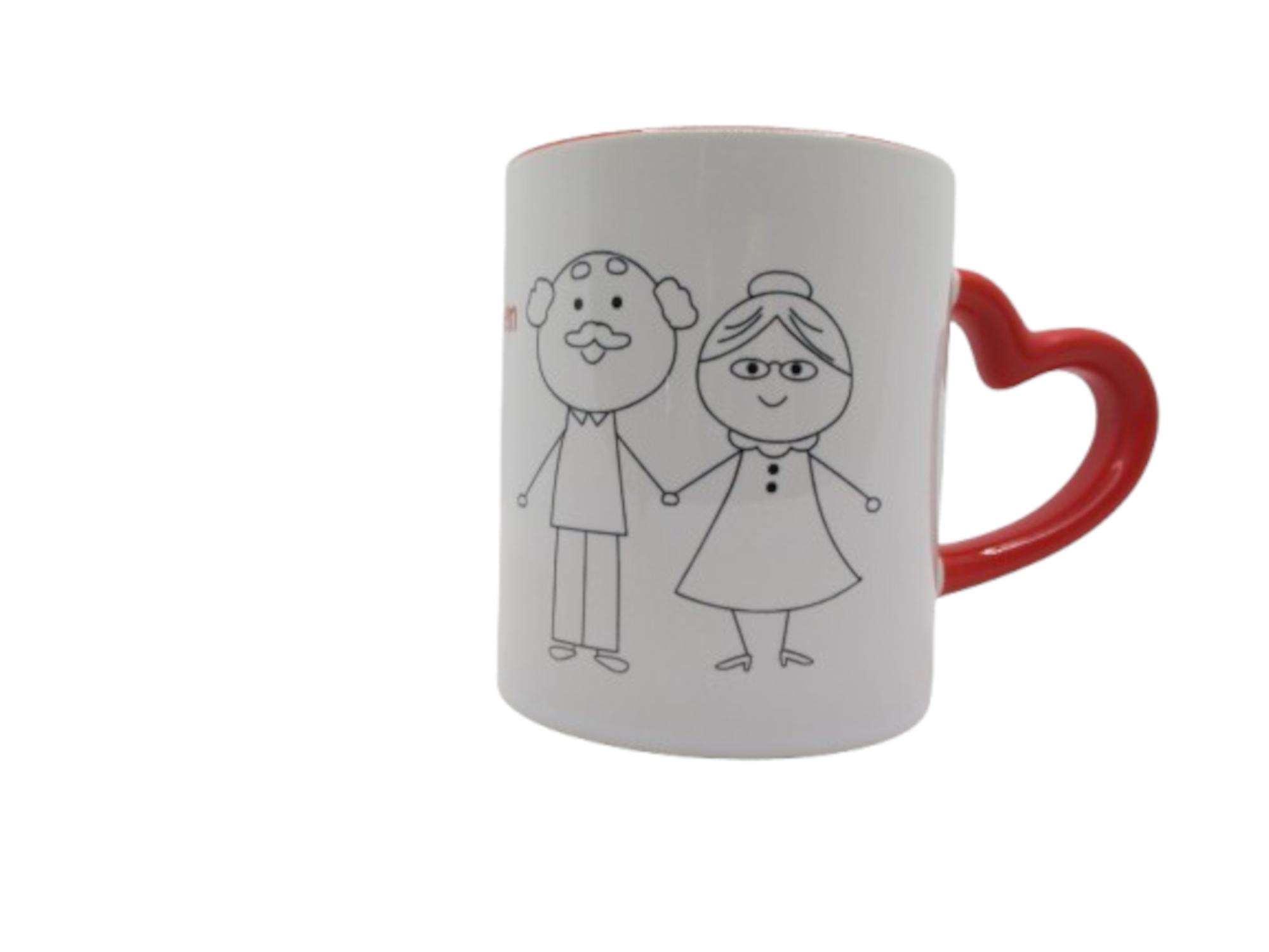 Diese liebevoll gestaltete weiße Keramiktasse mit roten Akzenten verschenkt man gerne.